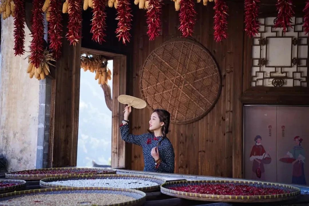 紧邻五桂堂的晒秋观景台可以一览篁岭全景,站在这里,你不仅能打卡独特的晒秋景观,晒出日子的红红火火还能感受眼前徽派古建的人文之美。