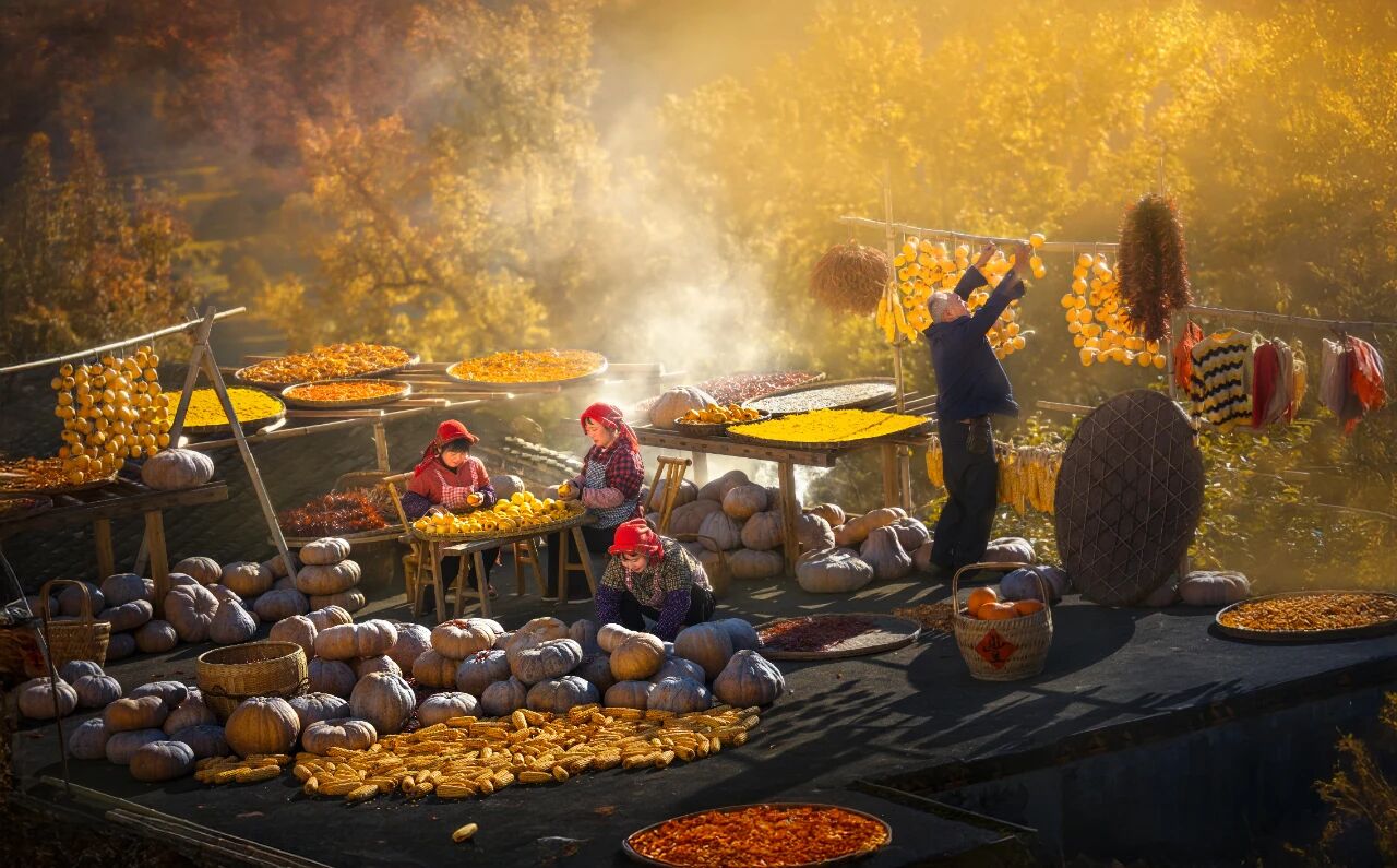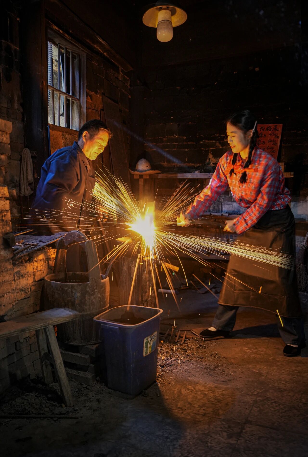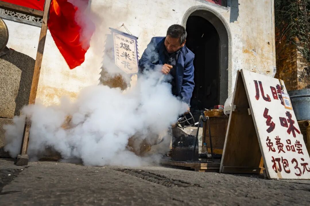 暖阳正好的日子里,古村到处都是鲜活的生活气息。村口的奶奶在暖阳下做扫把;晒台的大妈们边唠嗑边忙着晒秋;打铁铺的打铁声伴着号子和火花;拐角的老大爷坐在门口抽着旱烟……在这里,时光被调成回忆中的频道,每一处的温馨都是最治愈的馈赠。