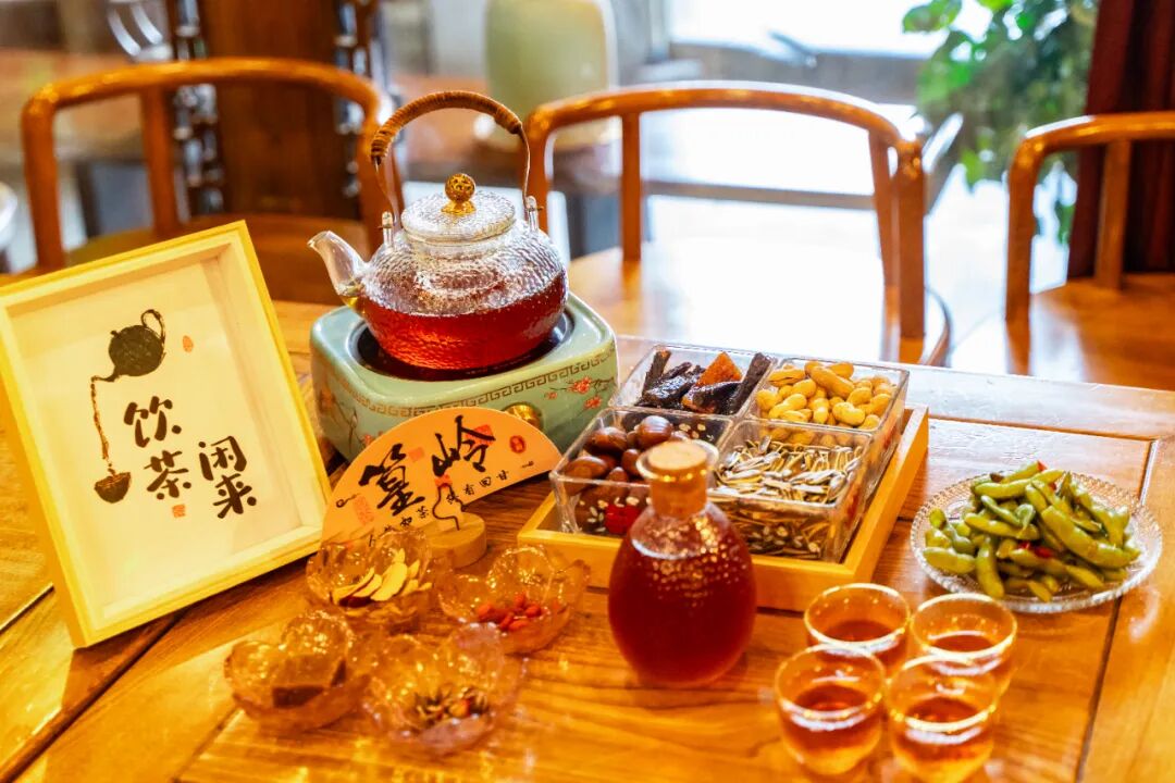 篁岭的冬日雅事,藏在慢下来的时光里。众屋广场的围炉煮茶早已备好,炭火燃起暖意,茶壶咕嘟作响,茶汤慢慢析出茶香,搭配婺源特色茶点慢慢品味,连时光都变得温柔。