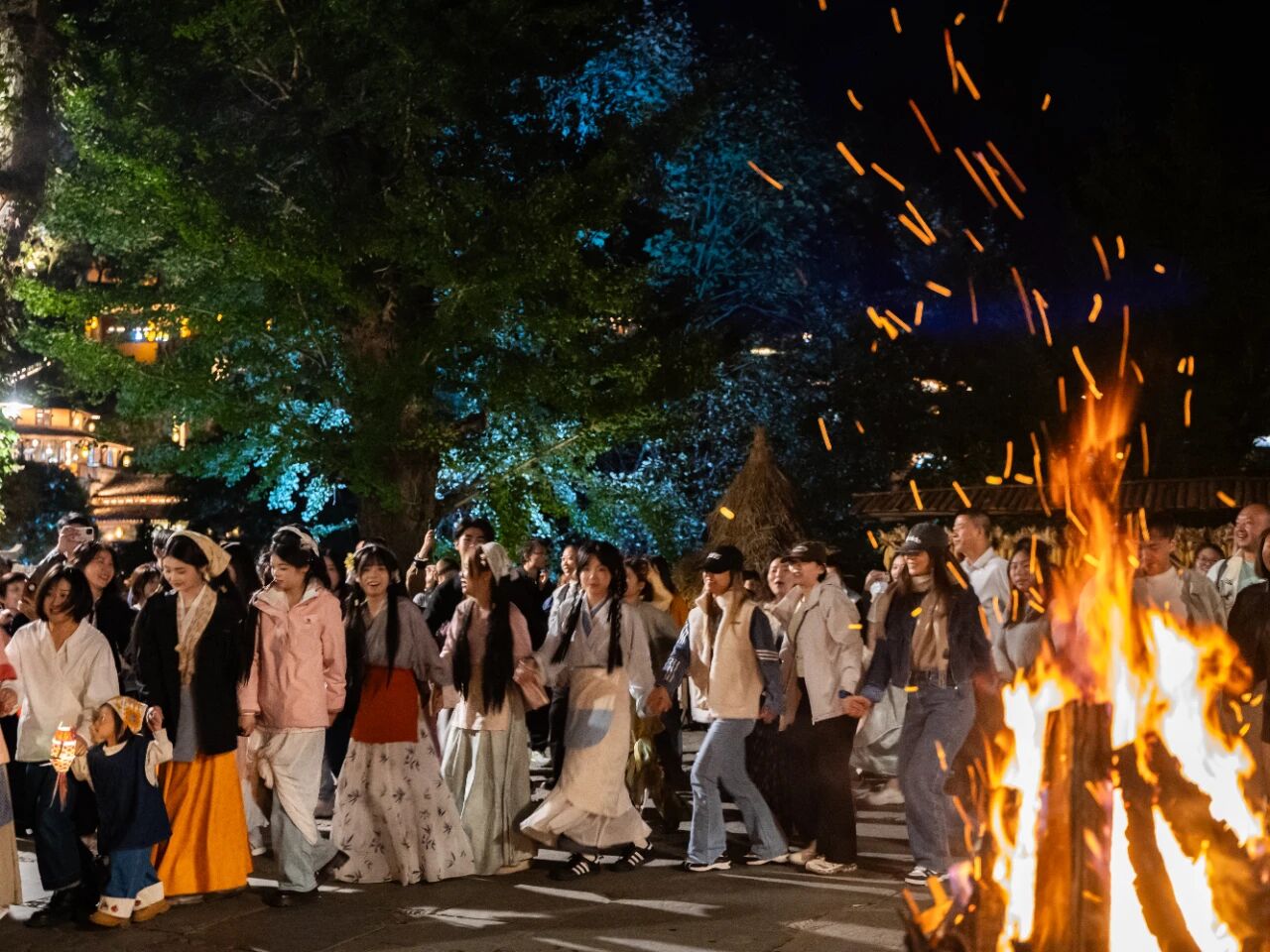 夜幕降临后,非遗壁画滚灯车、滚灯舞、纸灯舞仙鹤、板龙灯巡游,夜色中光影流转,尽显非遗瑰宝的独特韵味;若是遇上篝火小村晚,还能一起围着篝火唱歌跳舞,在欢声笑语中融入最热闹的古村之夜
