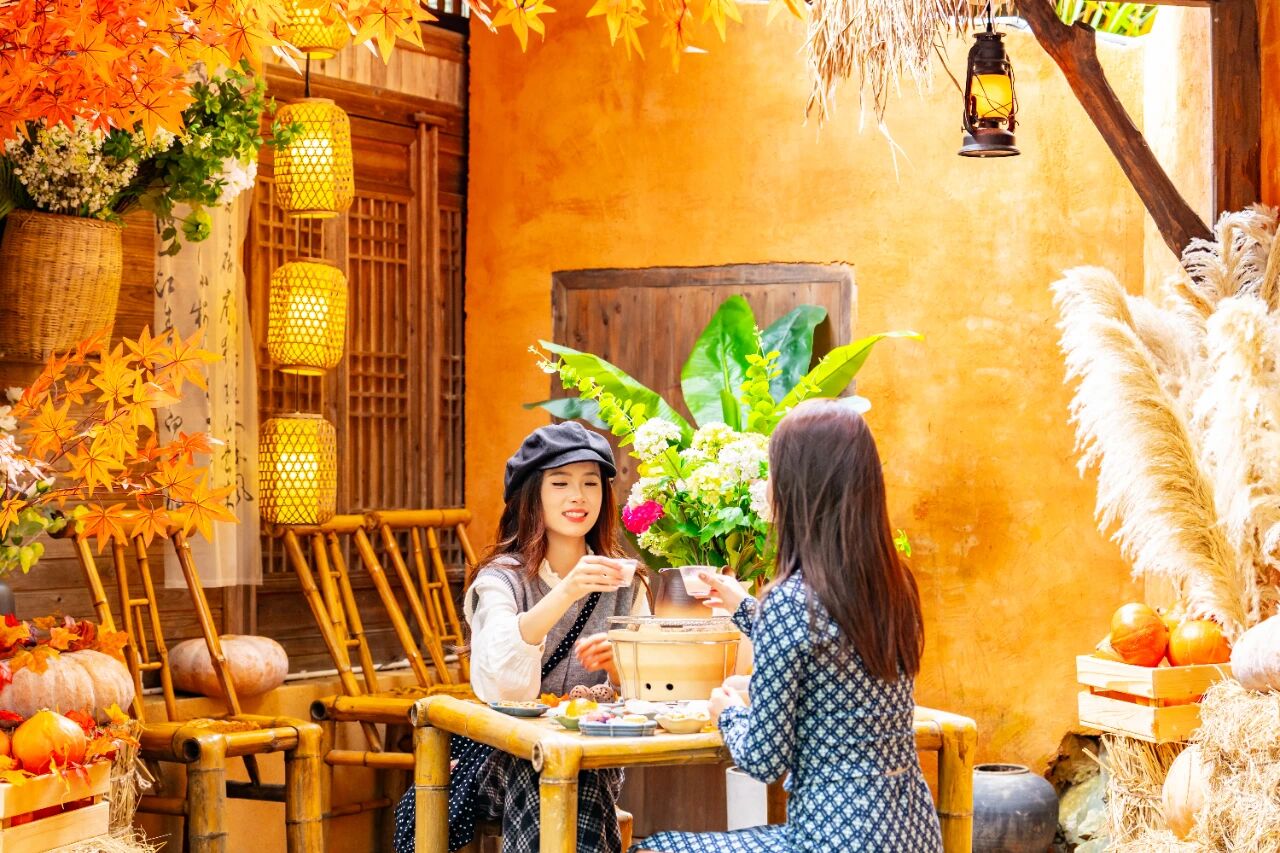 想吃点热闹的,山野中的长桌火锅宴绝对是首选!白纱垂坠花艺点缀,森系长桌宴的仪式感拉满。桌上的山野火锅咕嘟咕嘟冒着热气,食材的鲜香直击味蕾;现烤的窑炉面包更是点睛之笔,外皮酥脆、内里松软,刚出炉的香气能飘出老远,咬上一口,满是幸福的滋味。