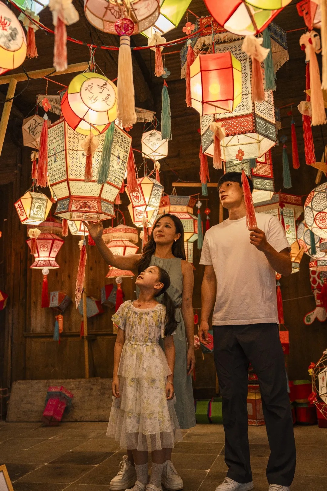 晚上,看一场热闹的非遗盛宴,滚灯车、滚灯舞、舞仙鹤、板龙灯等表演,长长的龙灯在古村街巷中穿梭,灯光闪烁、锣鼓喧天,让孩子直观感受徽州民俗的热闹与厚重,体会古人的智慧和才能。