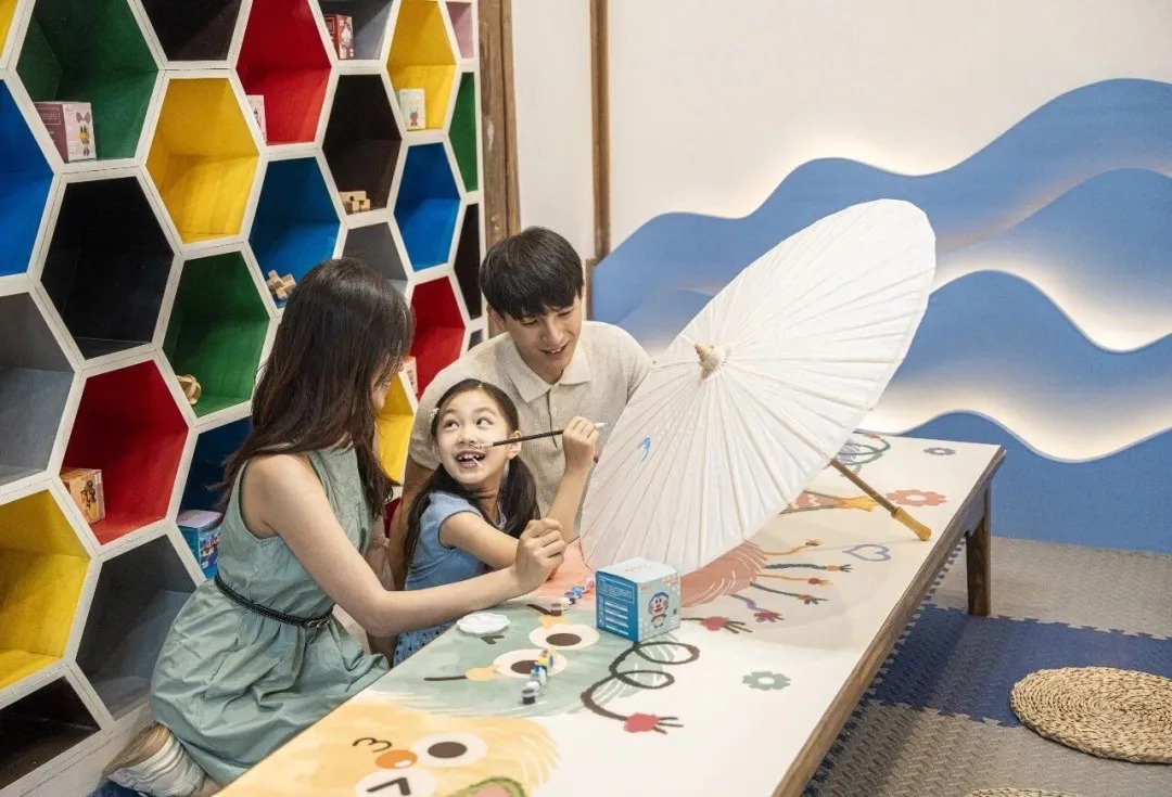 想要沉浸式感受篁岭的春日与烟火,不妨选择山上专为亲子家庭打造的温馨客房,无论是宽敞舒适的家庭房,还是充满童趣的亲子房,清晨推窗见漫山金黄,夜晚欣赏完村落夜景,伴着山间清风入眠,感受古村的静谧与温柔。
