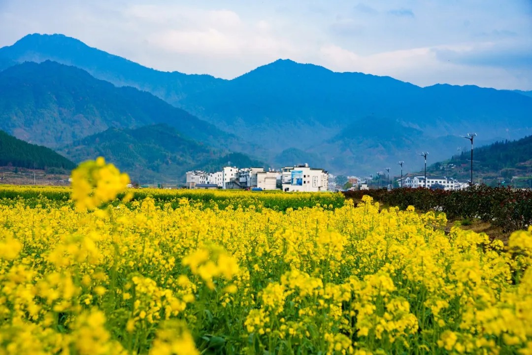 这片花海与粉墙黛瓦的古宅挨得最近,推开木窗,就是满目撞进来的金黄;走在青石板古巷里,抬头是花枝探出墙头,低头是花瓣落满石阶,古韵悠悠的徽州村落,被这热烈的春花衬得愈发温柔,一呼一吸间,全是春日的清甜。