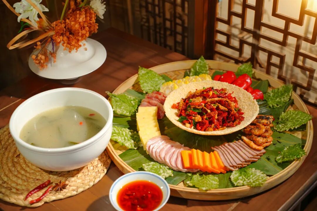 再赴一场晒秋宴,食材都是当地菜园里种的,装在晒盘里端上来,赣味里带着徽韵。咬一口青菜,鲜得能尝到阳光的味道,这才是秋天该有的吃的。