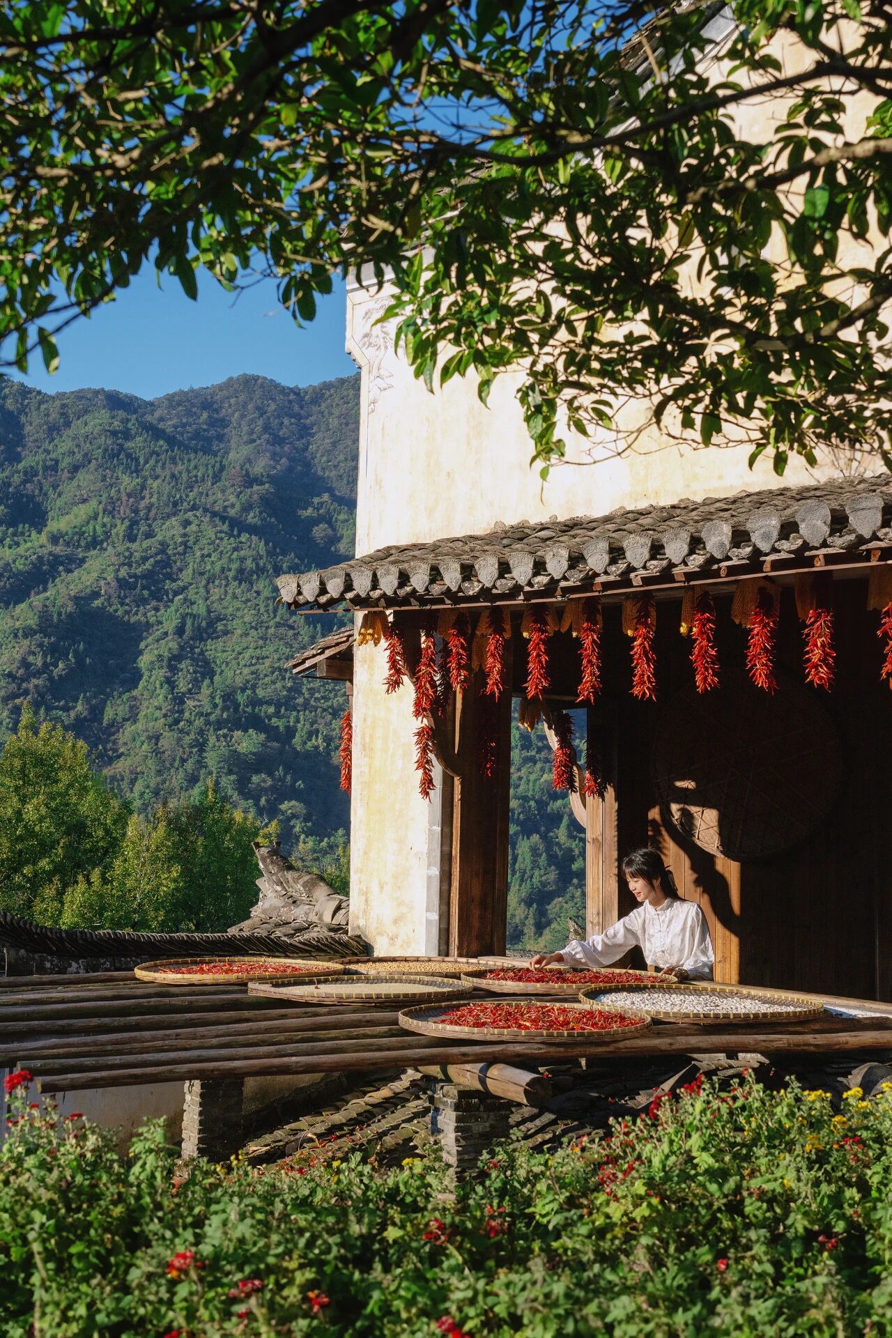 剃头铺的小屋里有着超绝的晒秋机位,是小晒娘们超爱的打卡点之一。只需要让你的拍照搭子在远处架起镜头,就能轻松捕捉灵动的晒秋瞬间,快来试试吧~