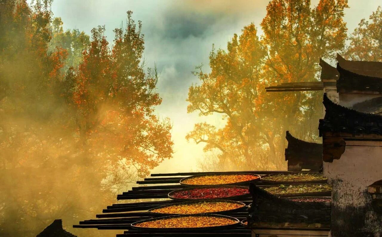 此时已然进入红枫最佳观赏期,篁岭的秋色到达巅峰,这里不止有层林尽染的红枫美景,更有着秋色烟火的双重治愈,邀你用五感解锁这份初冬限定的浪漫。