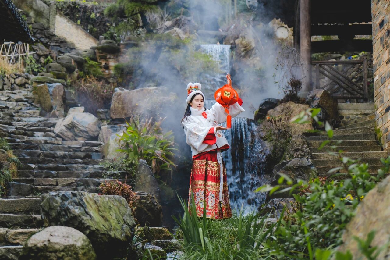 在篁岭赏枫,耳朵也不会寂寞。风穿枫林的簌簌” 声,山泉流经石涧的 叮咚” 声,构成了自然的白噪音;而村落里,游客、村民的闲谈声,拦门酒的欢笑声,又为这份静谧添了几分鲜活。