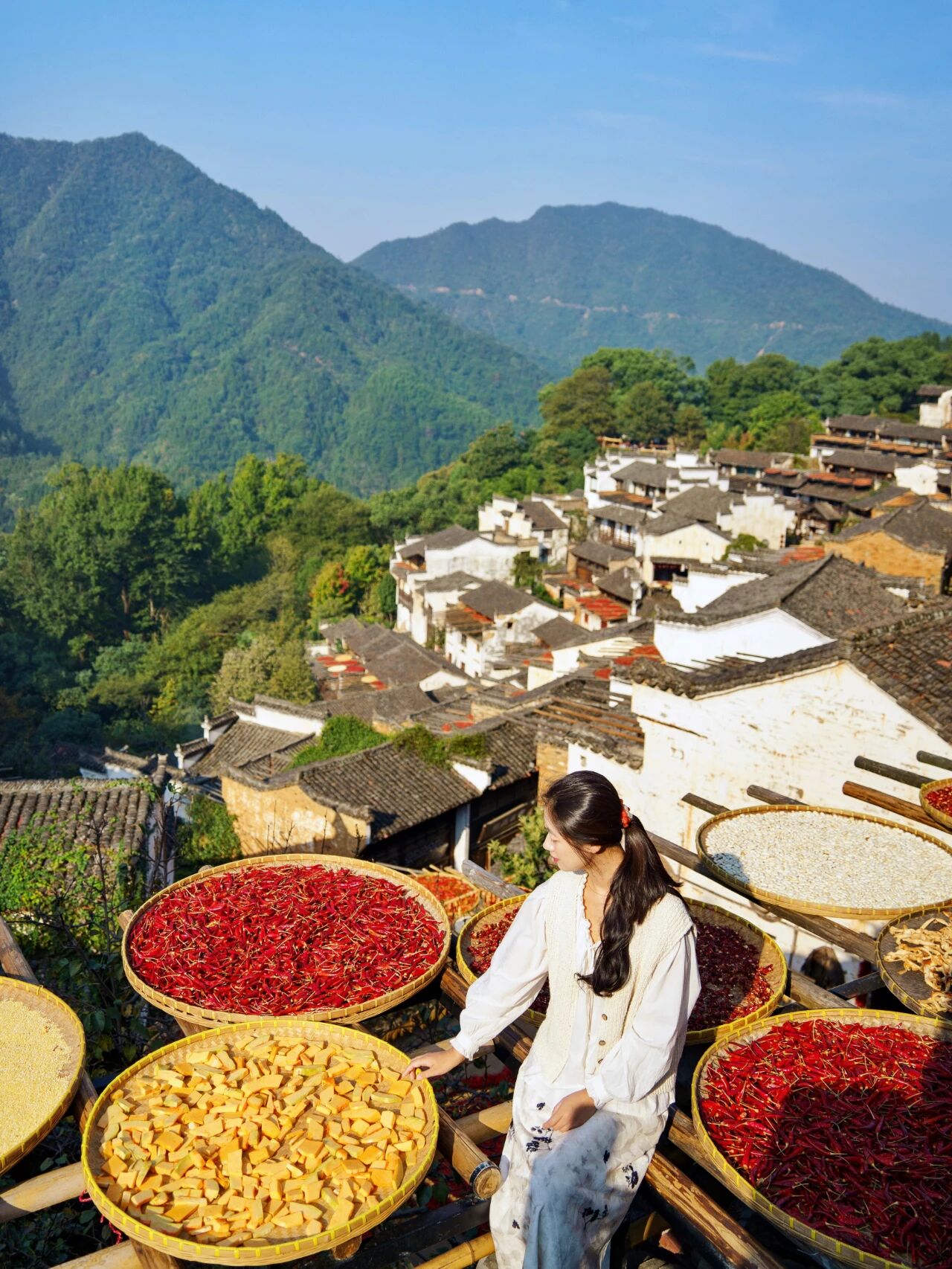 而当风从村落吹来时,这份自然清香又多了几分烟火气:晒秋架上的辣椒香、玉米甜香,还有远处飘来的炊烟,与枫叶香交织成独属于篁岭的秋味限定香氛这一刻,山林的静谧与村落的热闹完美平衡,连空气都变得温柔起来。