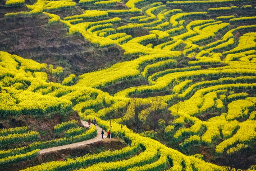 花海加倍!篁岭一期二期梯田油菜花同步开放,春日鎏金盛景焕新颜