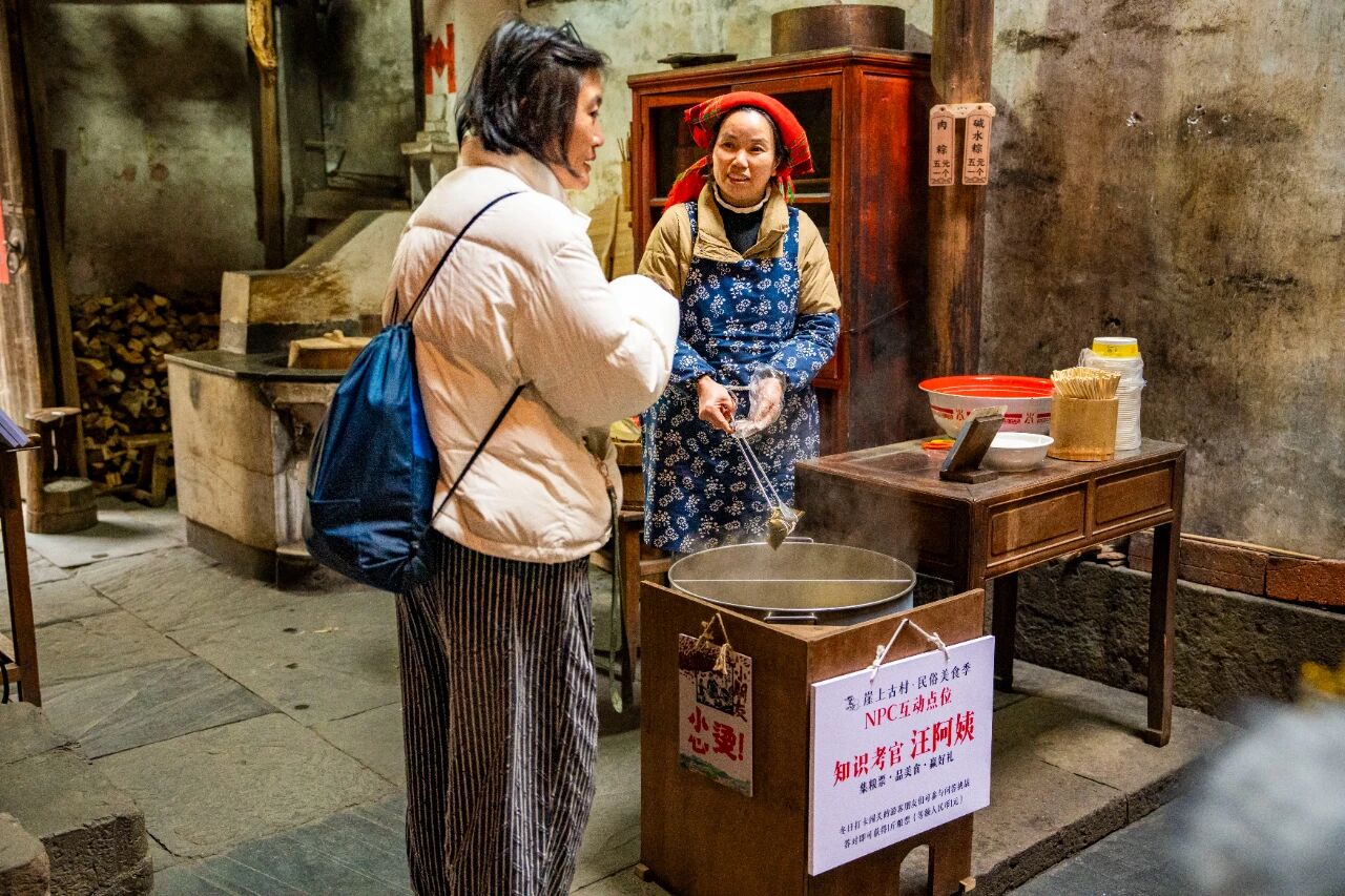 除此之外,9NPC民俗打卡点更是热闹非凡,所有游客都能靠互动挑战赢取“乡愁粮票”!先去篁岭合作社找供销社售货员王阿姨,领一份闯关地图,开启闯关之旅