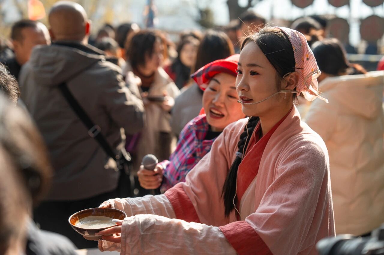 从清晨到夜幕,古村的热闹就没断过!刚进景区,身着传统服饰的村姑就端着拦门酒迎接,一口米酒下肚,暖意从胃里蔓延开来