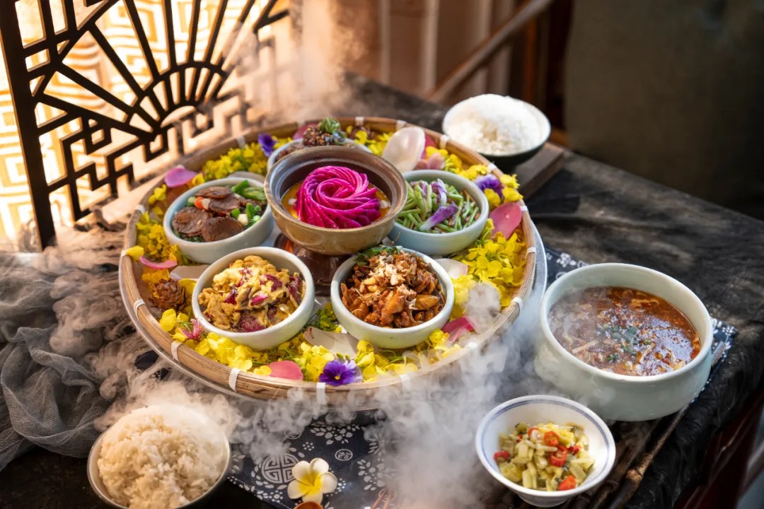 这里的春天,是藏在街巷里的。街边的小摊上,刚蒸好的清明粿冒着热气,咬一口是艾草的清冽混着糯米的软糯;天街食府里,推出春季限定「鲜花宴」,把时令美味搬上餐桌,每一口都是徽州大地春日的馈赠。