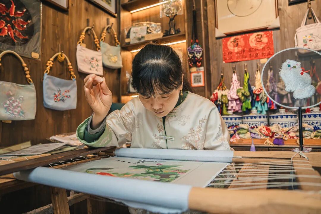 你可以走进古村的非遗工坊,亲手触摸老手艺里的春日浪漫。篁竹坊里,竹编艺人指尖翻飞,细细的竹片转眼就变成精巧的竹篮竹筐,你也可以坐下来,跟着师傅学编一个小小的竹饰,把篁岭的春日,编进竹条的纹路里;灯彩工坊中,老师傅正一刀一刀刻着灯彩上的花样,你也可以拿起刻刀,画一幅简单的春日纹样,在一笔一划里,感受非遗的千年魅力。