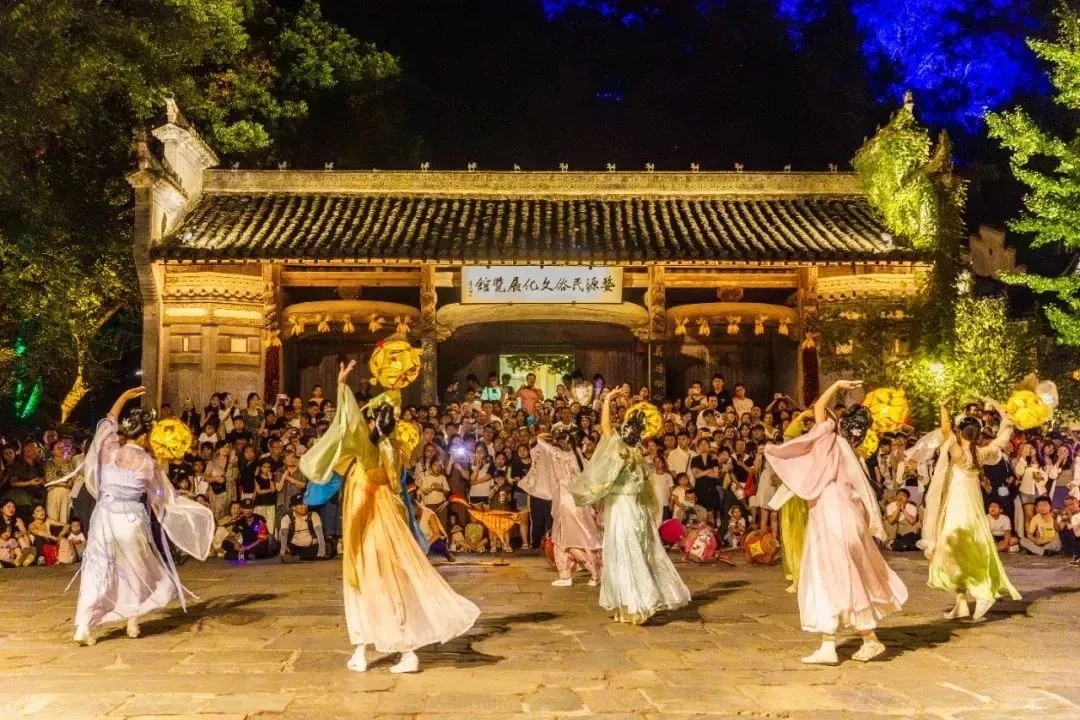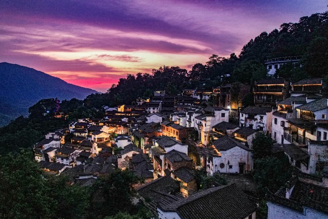 等到夜幕降临,古村的浪漫才刚刚开始。暖黄的灯光次第亮起,把崖上古村衬得温柔无比,你可以观看滚灯舞、舞仙鹤等非遗灯彩。也可以跟着板龙灯的巡游队伍走一走,长长的龙灯穿梭在古巷里,锣鼓喧天,灯光闪烁,沉浸式感受徽州民俗的热闹与鲜活
